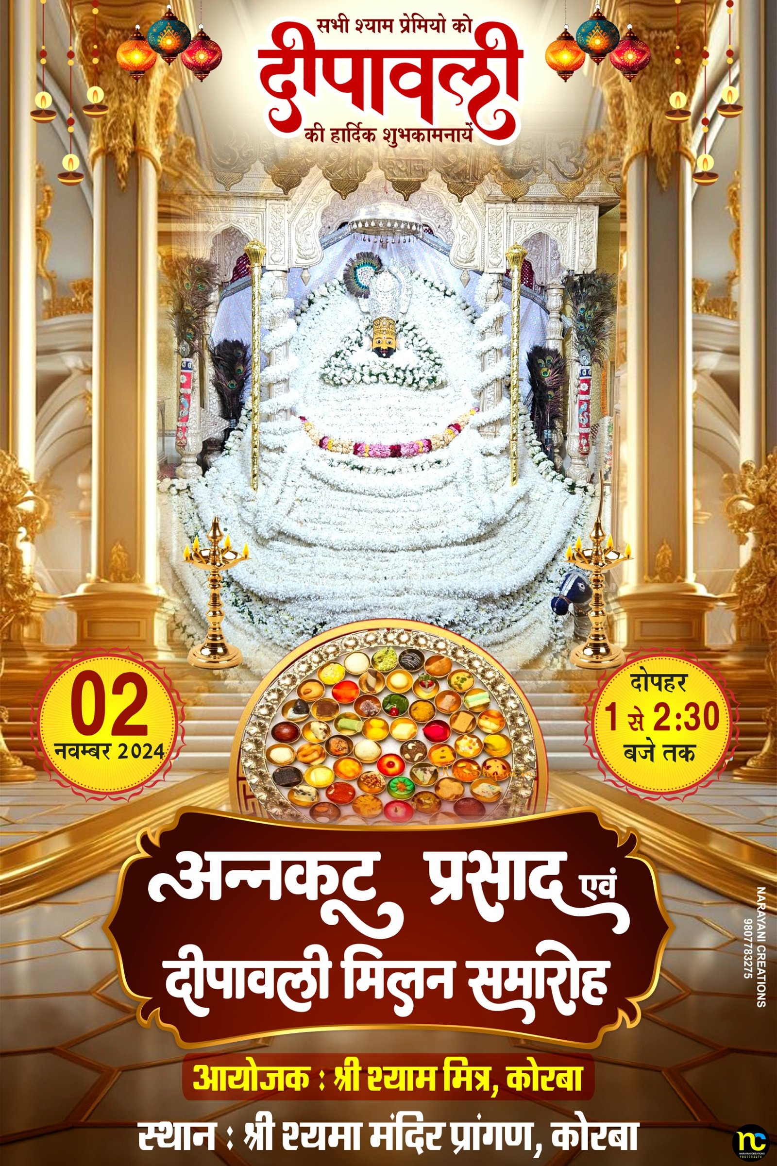 कोरबा गोवर्धन पूजा एवं दीपावली के उपलक्ष में श्याम मंदिर में श्याम मित्र मंडल द्वारा भंडारे का आयोजन किया गया जिसमें 700 से अधिक लोगों ने श्याम बाबा का प्रसाद भोग ग्रहण किया और श्याम बाबा का आशीर्वाद प्राप्त किया ।