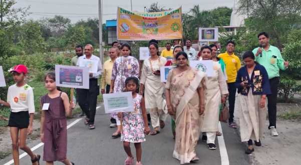 आवासीय परिसर में प्लास्टिक प्रदूषण को खत्म करने का संदेश लेकर निकाली गई रैली