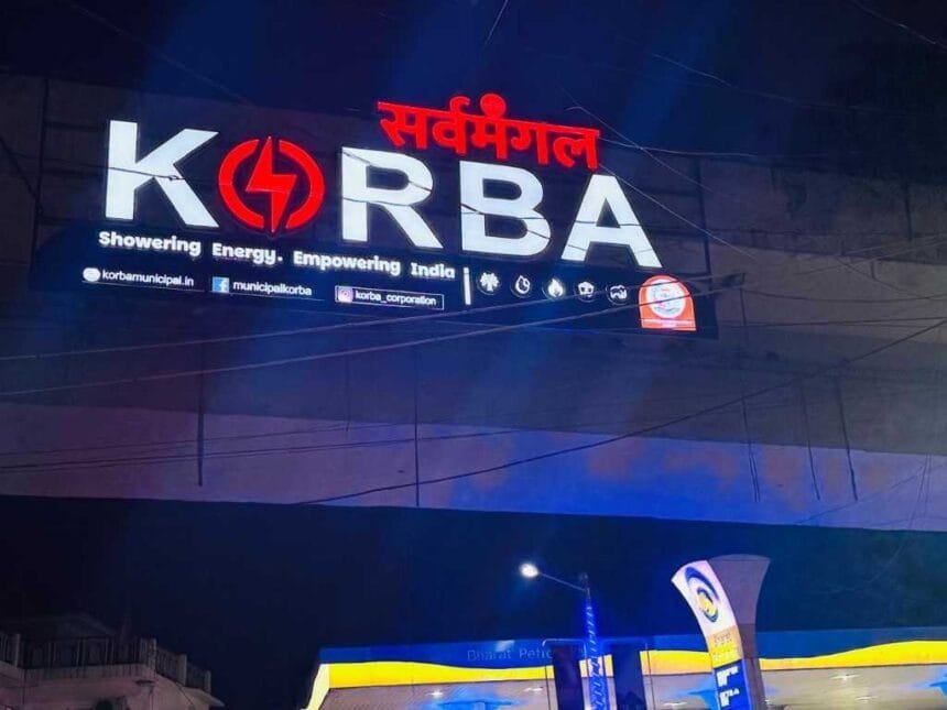 कोरबा जिला नगर निगम आयुक्त आशुतोष पांडेय के निर्देश पर कोरबा पुराने शहर में संचालित मुरारका पेट्रोल पंप के ऊपर ओव्हरब्रिज में नगर पालिक निगम कोरबा द्वारा लगाया गया “सर्वमंगल कोरबा’’ का चमकता साईन बोर्ड पावर हाउस रोड को एक नया लुक दे रहा है। शहर सौदंर्यीकरण की दिशा में निगम द्वारा किए जा रहे विविध कार्यो के अंतर्गत ओव्हरब्रिज पर लगाया गया, यह साईन बोर्ड एक ओर जहॉं पावर हाउस रोड से गुजरने वाले लोगों का बरबस ही ध्यान आकर्षित कर रहा है, तो वहीं दूसरी ओर “शोवरिंग एनर्जी-इम्पावरिंग इंडिया’’ का संदेश भी दे रहा है।