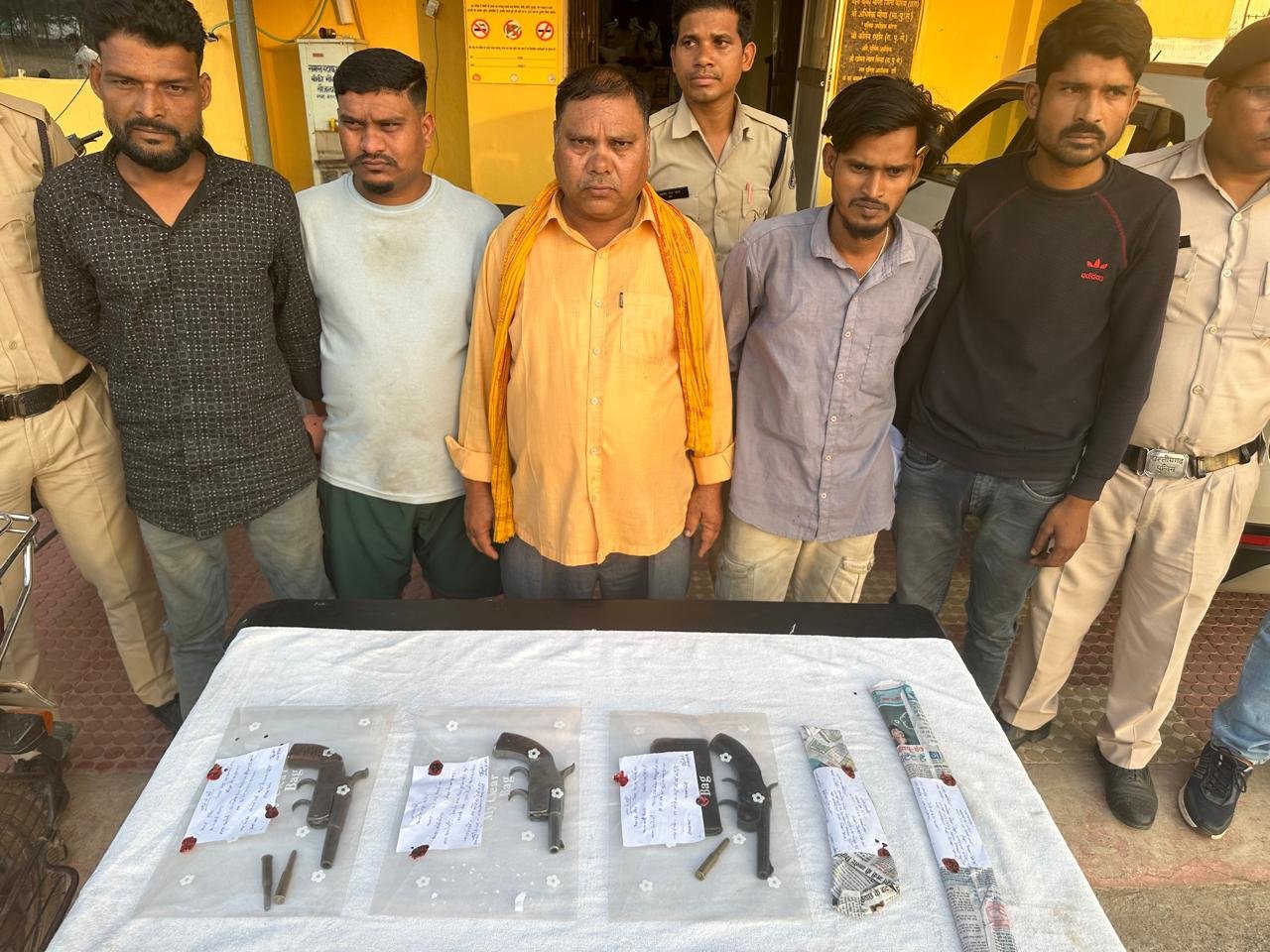 विकेश गुप्ता, धर्म सिंह राजपूत एवं सेवा सागर के विरुद्ध आर्म्स एक्ट की धारा 25 और 27 के अंदर अपराध क्रमांक 77/2025 तथा आर्म्स एक्ट की धारा 25 और 29 के अंदर अपराध क्रमांक 78/2025 दर्ज की गई है ।