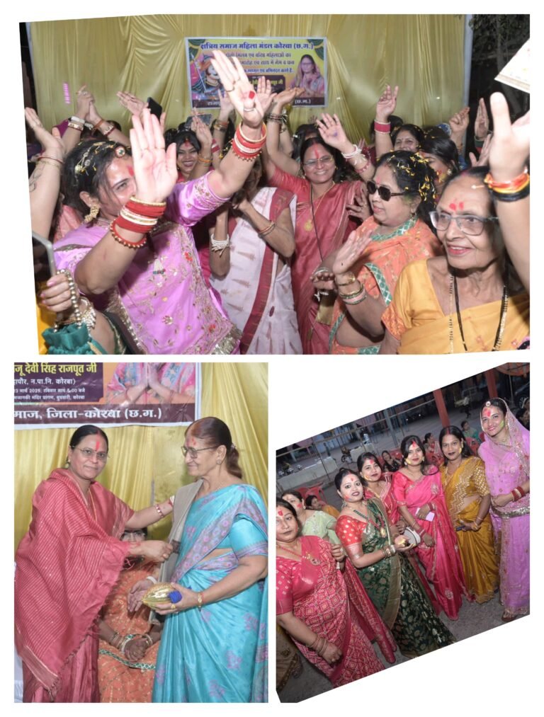 कोरबा। क्षत्रिय समाज महिला मंडल कोरबा द्वारा एक भव्य होली मिलन एवं सम्मान समारोह का आयोजन किया गया, जिसमें समाज की महिलाओं ने उत्साहपूर्वक भाग लिया। इस आयोजन का उद्देश्य न केवल होली के रंगों से वातावरण को सराबोर करना था, बल्कि समाज की वरिष्ठ महिलाओं को सम्मानित कर उनके योगदान को सराहना भी देना था।