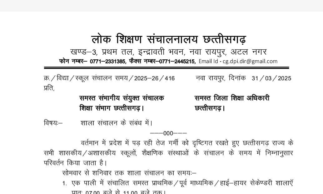 गर्मी दिखा रही तेवर,छत्तीसगढ़ में स्कूलों का बदला समय,देखें आदेश
