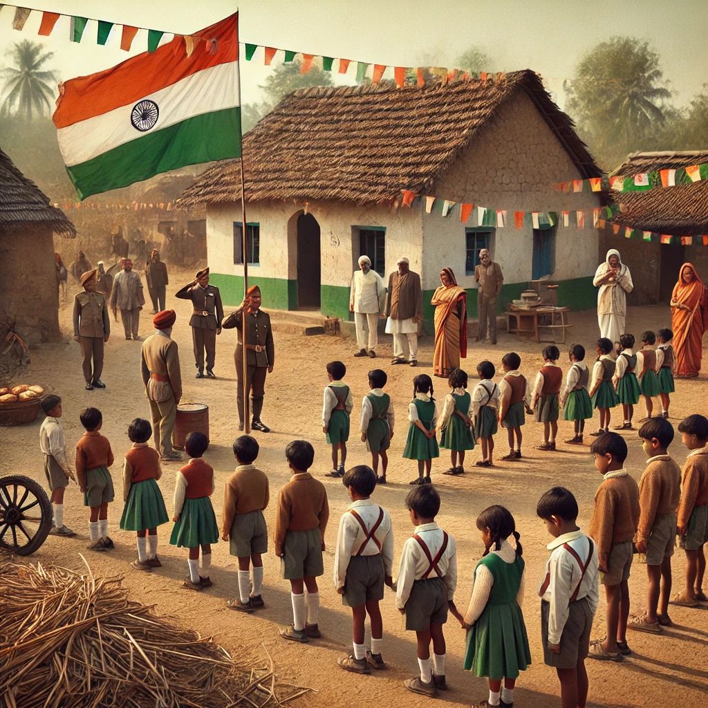 सुबह सबसे पहले ध्वजारोहण होता था। गाँव के हर घर से बच्चे तिरंगे के सामने एकत्र होते, और जैसे ही झंडा फहराया जाता, पूरा आसमान “झंडा ऊँचा रहे हमारा” के स्वर से गूंज उठता। ये गीत हमारे बचपन का हिस्सा बन चुका था। फिर हम सभी बच्चे प्रभातफेरी में निकलते। तीन-तीन बच्चों का एक समूह बनता और हाथों में हाथ डालकर, गाँव की हर गली में घूमते। “विजयी विश्व तिरंगा प्यारा” गाते हुए हम पूरे गाँव की गलियों में तिरंगा लहराते, जैसे हम खुद उस आजादी और गणतंत्र का जश्न मना रहे हों जिसे हमारे पूर्वजों ने हमें सौंपा था।