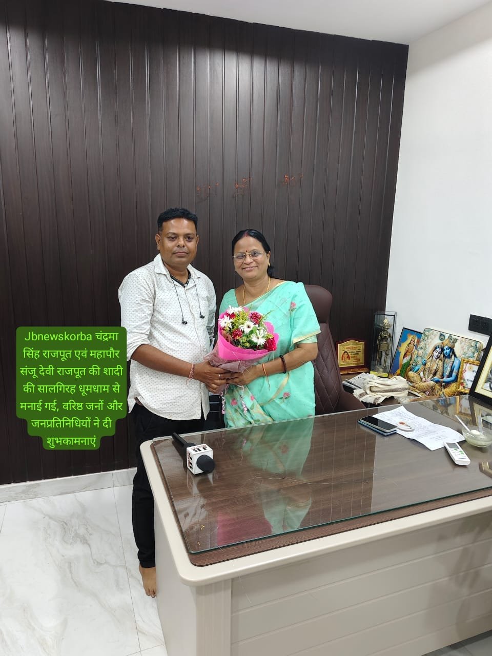नगर के प्रतिष्ठित समाजसेवी चंद्रमा सिंह राजपूत एवं कोरबा नगर निगम की महापौर संजू देवी राजपूत की शादी की वर्षगांठ बड़े धूमधाम और उत्साह के साथ मनाई गई। इस खास अवसर पर सुबह से देर रात तक उनके निवास स्थान पर शुभकामनाएं देने वालों का तांता लगा रहा। कोरबा के वरिष्ठ नागरिक, सामाजिक कार्यकर्ता, जनप्रतिनिधि एवं आम जन भारी संख्या में उपस्थित रहे और दंपत्ति को शुभकामनाएं दीं।
