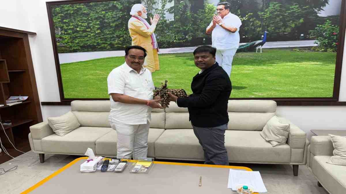 रायपुर। एक दिवसीय दिल्ली प्रवास के दौरान छत्तीसगढ़ के जल संसाधन मंत्री केदार कश्यप ने केंद्रीय जल शक्ति मंत्री सीआर पाटिल से मुलाकात की। इस औपचारिक भेंट के दौरान मंत्री कश्यप ने केंद्रीय मंत्री को बस्तर के प्रसिद्ध ढोकरा आर्ट से निर्मित हाथी और पुष्प गुच्छ भेंट कर छत्तीसगढ़ की सांस्कृतिक विरासत का सम्मान किया।
