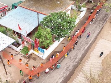 आंदोलन में शामिल सभी शिक्षकों ने एक-एक फीट के हिसाब से 2621 फीट लंबी चुनरी यात्रा निकालकर समायोजन की मांग की।