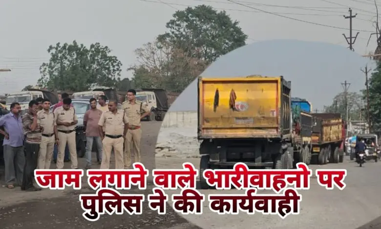 जाम लगाने वाले भारी वाहनों पर कुसमुंडा पुलिस ने की कार्यवाही