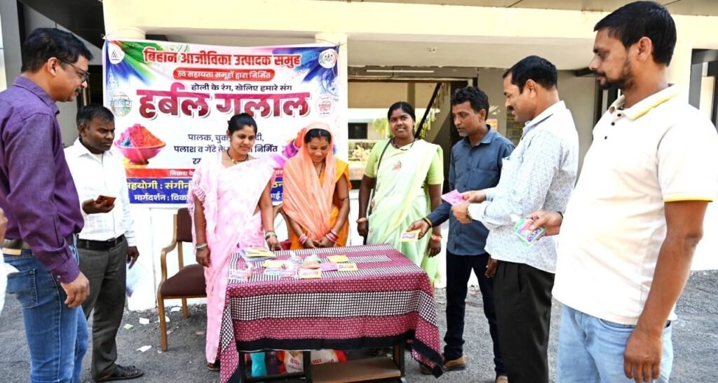 कलेक्टोरेट एवं जिला पंचायत में सजा रंग-बिरंगे हर्बल गुलाल का स्टॉल