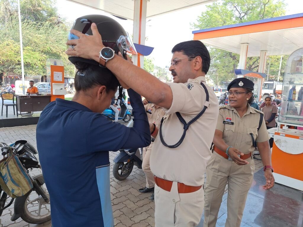पुलिस अधीक्षक रजनेश सिंह के दिशा निर्देश एवं अतिरिक्त पुलिस अधीक्षक रामगोपाल करियारे की मार्गदर्शन में यातायात नियमों का उल्लंघन करने वाले वाहन चालकों के विरुद्ध लगातार मोटरयान अधिनियम के तहत सघन चालानी कार्यवाही किया जा रहा है वहीं पर संवेदनशील पुलिसिंग के तहत सड़क दुर्घटनाओं में हेलमेट नही धारण करके वाहन चलाने वाले व्यक्तियों की आकस्मिक दुर्घटना को देखते हुए और ऐसे दुर्घटनाओं में गंभीर रूप से आहत व्यक्तियों की मानवीय क्षति को ध्यान में रखते हुए “पुलिस पेट्रोल पंप” के पास पेट्रोल पंप में कार्यरत कर्मचारियों एवं आम जरूरतमंद नागरिकों को पुलिस अधीक्षक रजनेश सिंह की हाथों हेलमेट का वितरण किया गया।