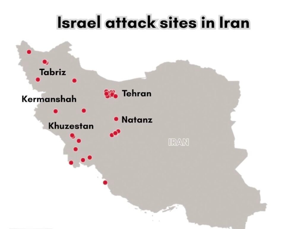 इजरायली सेना ने तेहरान पर जोरदार हमला करते हुए उसकी शीर्ष सैन्य नेतृत्व को खत्म कर दिया और ईरान की सैन्य क्षमताओं को गहरी चोट दी। शुक्रवार सुबह से ही इजरायली लड़ाकू विमानों ने तेहरान और अन्य शहरों में लगातार बमबारी की, जिसमें न तो कोई विमान गिरा और न ही कोई पायलट मारा गया। इजरायली सैन्य प्रवक्ता ब्रिगेडियर जनरल एफी डेफ़्रिन ने कहा कि इन हमलों में 200 फाइटर जेट्स ने करीब 100 ठिकानों को निशाना बनाया।