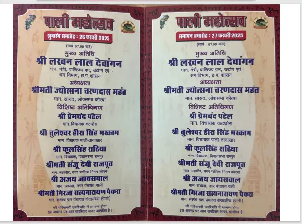 कोरबा/पाली। कोरबा जिले के पाली क्षेत्र में इस वर्ष पाली महोत्सव 2025 का आयोजन 26 एवं 27 फरवरी को भव्य रूप से किया जाएगा। यह महोत्सव ग्राम पंचायत केराझरिया (पाली) स्थित पाली महोत्सव मैदान में संपन्न होगा। दो दिवसीय इस आयोजन में क्षेत्र की समृद्ध सांस्कृतिक धरोहर, पारंपरिक लोक कला, संगीत और विविध कार्यक्रमों की प्रस्तुति होगी।