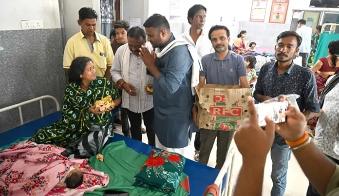 पूर्व प्रधानमंत्री राजीव गांधी की पुण्यतिथि पर कांग्रेसजनों ने अस्पताल में बांटे फल