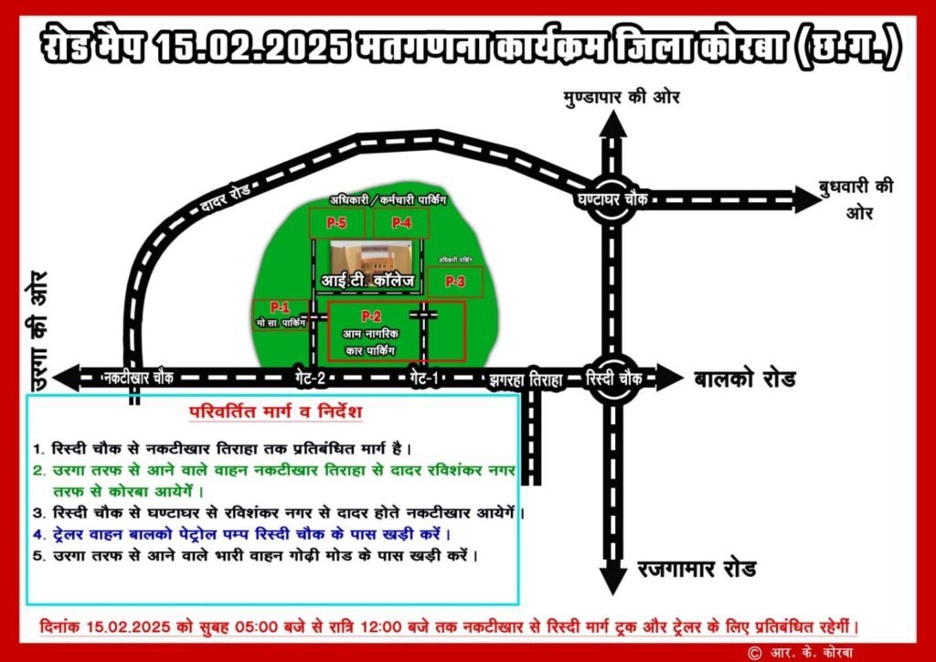 कोरबा/प्रशासन द्वारा मतगणना स्थल का रोड मैप जारी,कोरबा के मतगणना केंद्र आने-जाने का देखिए रूट मैप…