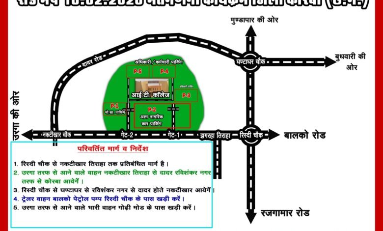 कोरबा/प्रशासन द्वारा मतगणना स्थल का रोड मैप जारी,कोरबा के मतगणना केंद्र आने-जाने का देखिए रूट मैप…