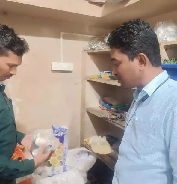 टीम के द्वारा फर्म के किचन एवं भण्डारण कक्ष का निरीक्षण के दौरान किचन में शाकाहारी मांसाहारी खाद्य पदार्थ एक साथ तैयार व भण्डार किया जाना पाया गया। फर्म के कार्यरत कर्मचारी उचित पोशाक, एप्रॉन, ग्लब्स, हेड कैप लगाए नहीं पाए गए तथा भण्डारण में खाद्य अखाद्य सामग्री एक साथ संग्रहित पाया गया एवं फर्म में उचित साफ-सफाई नहीं पाया गया तथा रखे गए मैदा में कीड़े पाए जाने पर जांच हेतु नमूना लेकर शेष मैदा का नष्टीकरण कराया गया एवं संकलित मैदे के नमूना को राज्य खाद्य परीक्षण प्रयोगशाला परीक्षण हेतु भेजा गया। जांच रिपोर्ट प्राप्त होने पश्चात खाद्य सुरक्षा मानक अधिनियम के तहत् कार्यवाही की जाएगी।