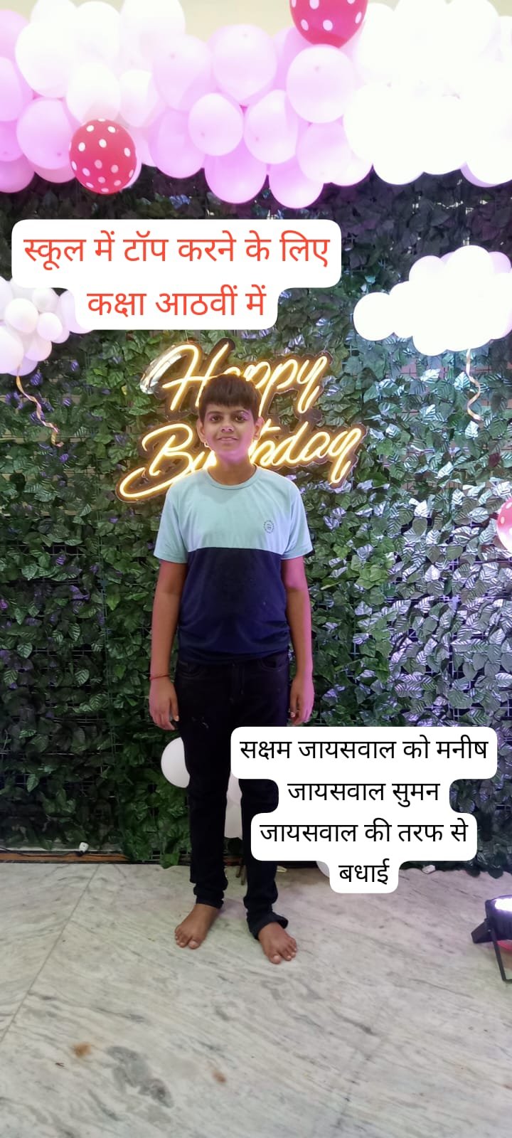 कोरबा। अग्रसेन स्कूल में पढ़ने वालेजे.बी न्यूज के संचालक मनीष जायसवाल के सुपुत्र सक्षम जायसवाल का आठवीं में टॉप करने पर बहुत-बहुत बधाई लगातार शुरू से ही पढ़ने में ध्यान देने में लगा रहने वाला और उसकी किसी लगन और प्रतिभा से ही आज उसने अपने मम्मी पापा और अपने स्कूल का नाम रोशन किया