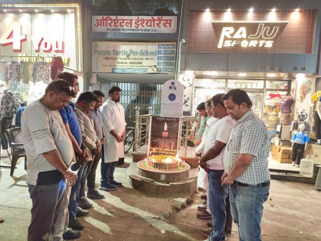 कोरबा। महावीर इंटरकॉन्टिनेंटल सर्विस ऑर्गेनाइजेशन कोरबा द्वारा आज शाम 7:30 बजे जय स्तंभ गीतांजलि बिल्डिंग के सामने श्रद्धांजलि सभा आयोजित की गई।