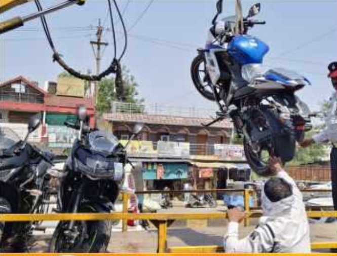 बिलासपुर) वरिष्ठ पुलिस अधीक्षक रजनेश सिंह के दिशा निर्देश एवं अतिरिक्त पुलिस अधीक्षक यातायात रामगोपाल करियारे के मार्गदर्शन एवं नेतृत्व में दिनभर यातायात नियमों को उल्लंघन कर्ताओं पर कार्यवाही अभियान का क्रम जारी रहा। इस दौरान सर्वप्रथम दोपहर को तिफरा ओवर ब्रिज के नीचे ऑटोमोबाइल एजेंसी के द्वारा सामानों को फैलाकर यातायात नियमों को बाधित करते हुए मोटरसाइकिल वाहनों का प्रदर्शनी लगाई गई थी।