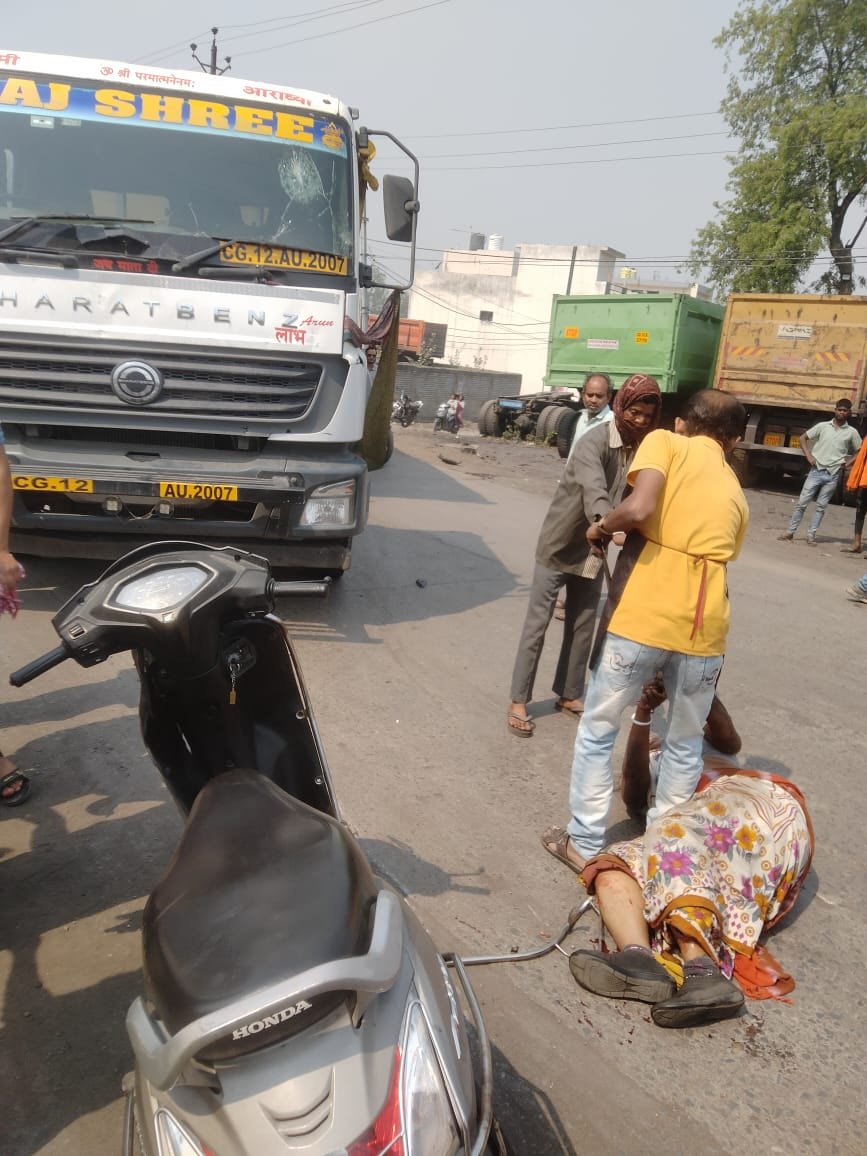 राताखार बाईपास में ट्रेलर ने स्कूटी को मारी ठोकर.. स्कूटी सवार महिला गंभीर रूप से घायल