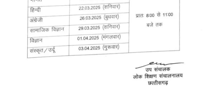 रायपुर: छत्तीसगढ़ में कक्षा 5वीं और 8वीं की केंद्रीकृत परीक्षा का टाइम टेबल जारी कर दिया गया है। शिक्षा विभाग के अनुसार, कक्षा 5वीं की परीक्षाएं 17 मार्च से 27 मार्च तक और कक्षा 8वीं की परीक्षाएं 18 मार्च से 3 अप्रैल तक आयोजित की जाएंगी।