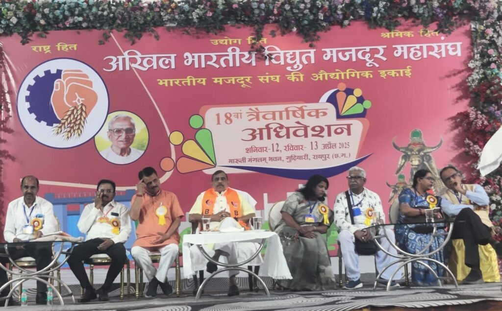 भारतीय मजदूर संघ की औद्योगिक इकाई अखिल भारतीय विद्युत् मजदूर महासंघ का दो दिवसीय राष्ट्रीय अधिवेशन 11-12 अप्रैल को मारुति मंगलम, गुढ़ियारी रायपुर में सफलतापूर्वक सम्पन्न हुआ। अधिवेशन की मेजबानी छत्तीसगढ़ ने की।मुख्य अतिथि के रूप में मुख्यमंत्री विष्णुदेव साय उपस्थित हुए, वहीं उद्घाटन कर्ता व मुख्य वक्ता के रूप में भारतीय मजदूर संघ के राष्ट्रीय महामंत्री रविन्द्र हिमते ने अधिवेशन को संबोधित किया।दो दिवसीय इस अधिवेशन में कुल आठ सत्र हुए। अधिवेशन के दौरान एक विशाल रैली का आयोजन भी हुआ, जिसमें देशभर से आए विद्युत कर्मचारियों ने शक्ति प्रदर्शन किया।