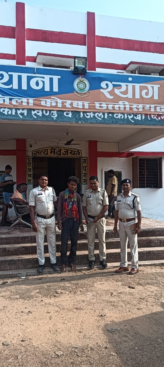 धोबी राम मंझवार पिता उजित राम मंझवार उम्र 23 वर्ष साकिन छिरहट थाना श्यांग मामले का संक्षिप्त विवरण इस प्रकार है कि प्रार्थी बीरसिंह मंझवार पिता बुधवार मंझवार उम्र 55 वर्ष साकिन छिरहूट थाना श्यांग जिला कोरबा ने दिनांक 01. 05.2024 को थाना आकर रिपोर्ट दर्ज कराया की दिनांक 30.04.2025 के करीबन 11:30 बजे मेरी बुआ इतवारी मंझवार के चिल्लाने की अवाज को सूनकर वह और रतियाना बाई उसके घर में जाकर देखे तो इतवारी बाई मंझवार के सीर से खून निकल रहा था। जिसे घटना के बारे में पूछने पर वह बताई की कोई आदमी घर में घुसकर गंदी-गंदी गाली गलौच करते हुए जान से मारदूगा कहकर सीर में डंडा से मारा है। मारपीट से दाहिने आख एवं माथे में चोट आयी है। मारने के बाद वह भाग गया तब उसने डायल-112 को फोन किया और श्यांग के अस्पताल में भर्ती कराया। बाद थाना आकर घटना के संबंध में रिपोर्ट करने पर अपराध धारा 294, 506, 323, 452 भादवि पंजीबद्ध कर विवेचना कार्यवाही में लिया गया।