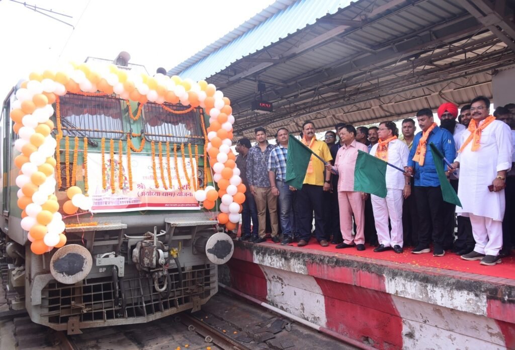 रायपुर, 06 नवंबर 2024/ मुख्यमंत्री विष्णु देव साय के नेतृत्व में सरकार द्वारा शुरू की गई श्रीरामलला दर्शन योजना को लेकर श्रद्धालुओं में उत्साह का माहौल है। बिलासपुर संभाग के 850 श्रद्धालुओं को लेकर आज विशेष ट्रेन अयोध्या धाम के लिए रवाना हुई। इस विशेष ट्रेन को श्रम और उद्योग मंत्री लखनलाल देवांगन, बेलतरा विधायक सुशांत शुक्ला और जिला पंचायत अध्यक्ष अरुण सिंह चौहान ने हरी झण्डी दिखाकर रवाना किया।