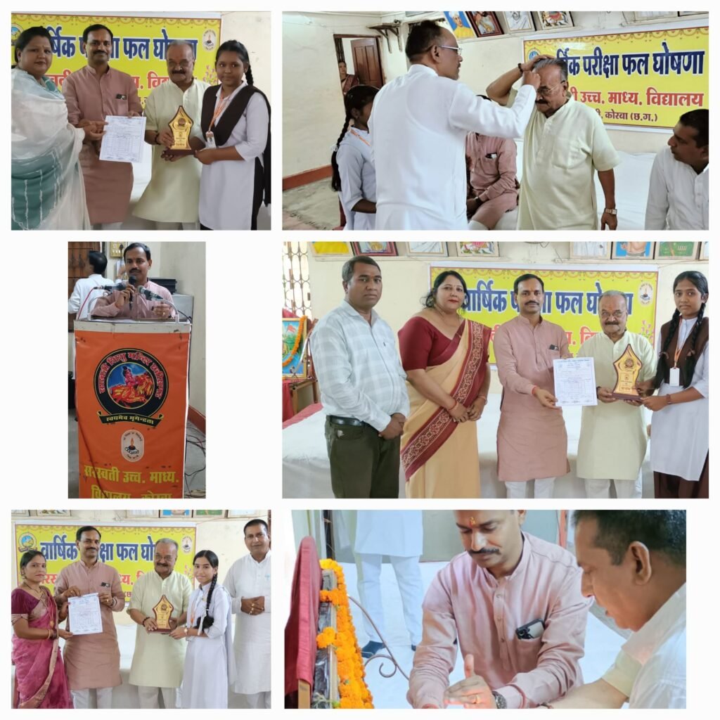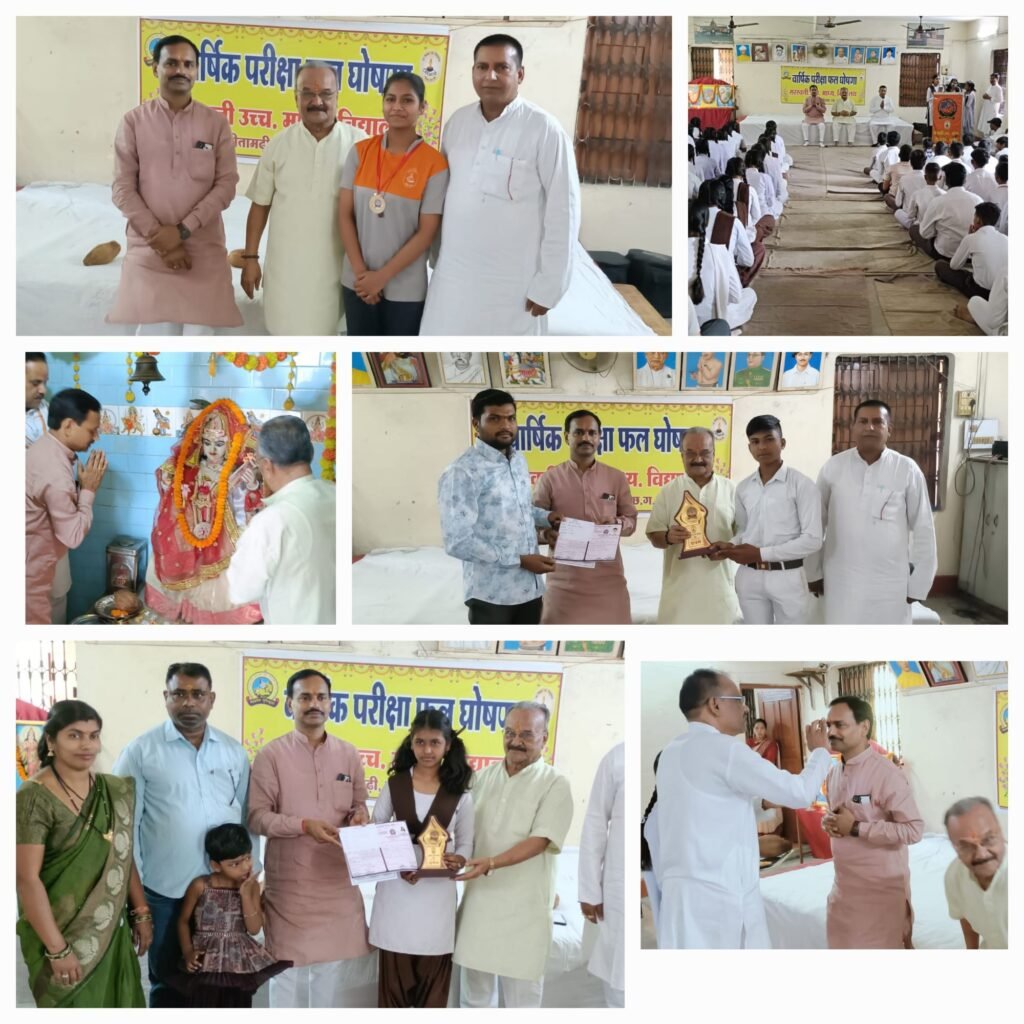 कोरबा। सरस्वती शिशु मंदिर माध्यमिक विद्यालय सीतामढ़ी कोरबा में परीक्षा परिणाम घोषणा एवं पारितोषिक वितरण कार्यक्रम आयोजित किया गया। कार्यक्रम की शुरुआत माता सरस्वती की वंदना से हुई। कार्यक्रम के दौरान अतिथियों का प्रेरणादायक उद्बोधन छात्रों को प्राप्त हुआ। मुख्य अतिथि श्री शंकर लाल टमकोरिया जी एवं विशिष्ट अतिथि श्री हितानंद अग्रवाल जी के द्वारा मेधावी छात्र छात्राओं को पारितोषिक वितरण कर उन्हें प्रोत्साहित किया गया। और उनके उज्जवल भविष्य की कामना की गई।