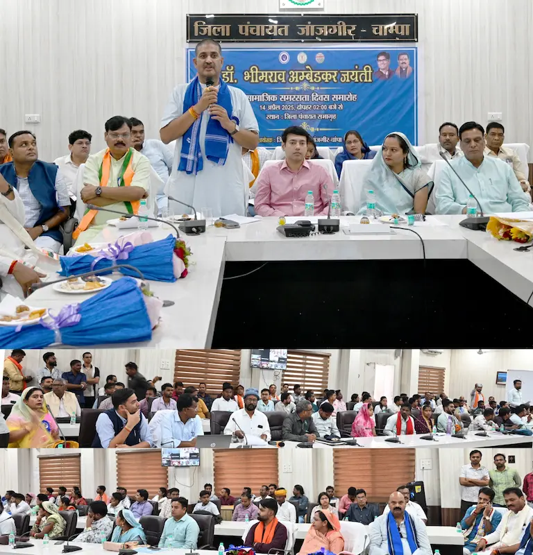 जांजगीर चांपा 15 अप्रैल 2025/छत्तीसगढ़ शासन द्वारा बाबा साहेब डॉ. भीमराव अंबेडकर की जयंती को सामाजिक समरसता दिवस के रूप में मनाने का निर्णय लिया गया है। इस अवसर पर आज जिला मुख्यालय, जनपदों एवं ग्राम पंचायतों में विभिन्न कार्यक्रम आयोजित किए गए।जिला स्तरीय मुख्य कार्यक्रम जिला पंचायत सभा कक्ष में आयोजित किया गया ।