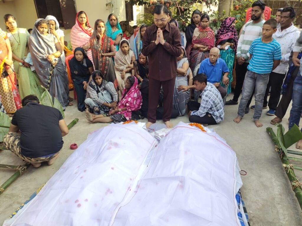 कोरबा. दर्री क्षेत्र के कलमीडुग्गु, प्रगतिनगर के 10 लोगों की कुम्भ यात्रा के दौरान सड़क हादसे में दुखद निधन के पश्चात रविवार की देर रात सभी के शव कोरबा लाये गए। सोमवार की सुबह नगर विधायक, वाणिज्य, उद्योग मंत्री श्री लखन लाल देवांगन सभी शोकाकुल परिवार के निवास पर पहुंच कर मृतकों को श्रद्धांजलि अर्पित की। शोक संतृप्त परिवार जनों से भेंट कर अपनी सवेंदना प्रकट की। इस अवसर पर मंत्री श्री देवांगन ने अपने सवेक्छानुदान मद से सभी 10 मृतकों के परिवार जनों को 1—1 लाख रूपए की सहायता राशि देने की घोषणा की।