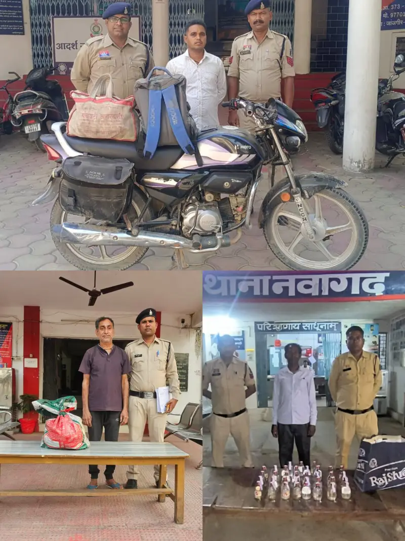 । द्वारा अवैध शराब बिक्री पर अंकुश लगाने के लिए लगातार कार्रवाई की जा रही है। इसी कड़ी में *प्रभारी पुलिस अधीक्षक निवेदिता पाल के निर्देशन में तथा अतिरिक्त पुलिस अधीक्षक  उमेश कुमार कश्यप* के कुशल मार्गदर्शन में *थाना चांपा* पुलिस द्वारा आरोपी अश्वनी कुमार साहू उम्र 35 साल निवासी देवलापाठ थाना ऊर्जा जिला कोरबा के कब्जे से 60 पाव देशी प्लेन शराब बरामद को मोटर सायकल में परिवहन करते पकड़ा *थाना नवागढ़ पुलिस* द्वारा आरोपी बद्रीनारायण धीवर उम्र 45 साल निवासी लखुर्री थाना सारागांव को मोटर सायकल में परिवहन करते हुए 35 पाव देशी प्लेन शराब *थाना बलौदा* पुलिस द्वारा आरोपी मोहमद सकुर मेमन उम्र 35 साल निवासी नेवसा थाना हरदीबाजार कोरबा के कब्जे से 35 पाव देशी प्लेन शराब बरामद किया जाकर आरोपियों के विरुद्ध अपराध/धारा 34 (2) आबकारी एक्ट के तहत कार्यवाही करते हुए विधिवत गिरफ्तार कर न्यायिक अभिरक्षा  पर भेजा जा चुका है।