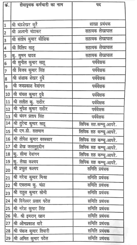 जिला सहकारी केन्द्रीय बैंक बिलासपुर के 29 अफसर-कर्मी पुनः बर्खास्त कर दिए गए हैं। स्टाफ कमेटी की बैठक में यह निर्णय लिया गया।