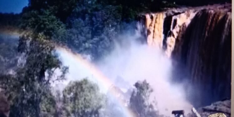 प्रकृति का अद्भुत करिश्मा: जब झरने पर उतरा इंद्रधनुष