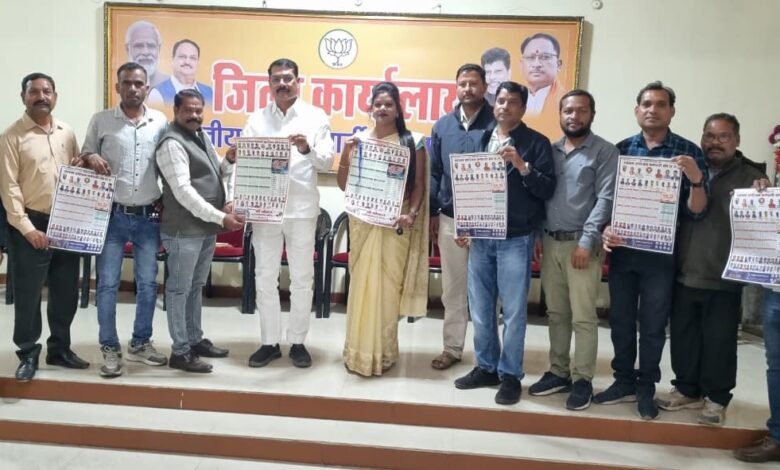 कोरबा। आज दिनांक 28/01/2026 को स्वास्थ्य संयोजक कर्मचारी संघ का वार्षिक कैलेंडर विमोचन भारतीय जनता पार्टी जिला कोरबा के जिला अध्यक्ष गोपाल मोदी के द्वारा बीजेपी कार्यालय ट्रांसपोर्ट नगर में सम्पन्न हुआ।
