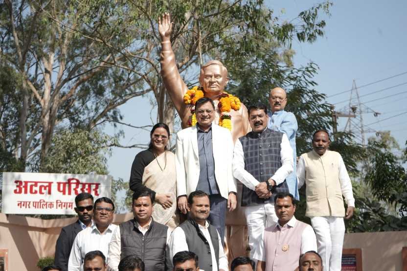 कोरबा, 25 दिसम्बर 2025। आज भारत रत्न, पूर्व प्रधानमंत्री स्व. श्री अटल बिहारी वाजपेयी की जयंती के अवसर पर उन्हें श्रद्धा सुमन अर्पित कर नमन किया गया। विवेकानंद उद्यान के समीप अटल परिसर में आयोजित कार्यक्रम में मुख्य अतिथि उद्योग, वाणिज्य, श्रम, आबकारी एवं सार्वजनिक उपक्रम मंत्री श्री लखनलाल देवांगन, जनप्रतिनिधियों एवं अधिकारियों ने वाजपेयी जी की प्रतिमा पर माल्यार्पण कर श्रद्धांजलि दी।