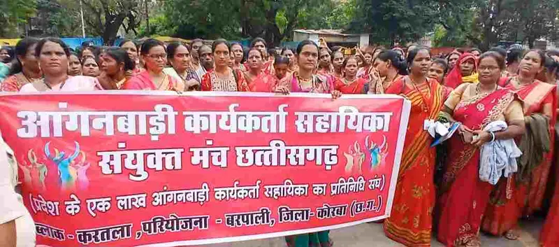 कोरबा :- आईसीडीएस योजना के तहत बीते 50 वर्षों से सेवाएं दे रही आंगनबाड़ी कार्यकर्ता और सहायिकाओं ने आज प्रदेशव्यापी प्रदर्शन करते हुए अपनी बुनियादी मांगों को लेकर आवाज बुलंद की। छत्तीसगढ़ के सभी जिला मुख्यालयों में संयुक्त मंच के आह्वान पर धरना–सभा एवं रैली आयोजित की गई और केंद्र व राज्य सरकार के नाम कलेक्टर को ज्ञापन सौंपा गया।