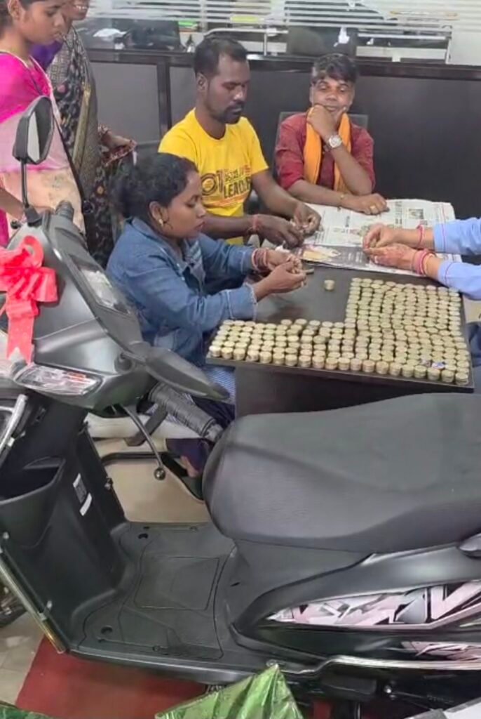 देवनारायण होंडा शो रूम, जशपुर में जब किसान बोरे में भरकर सिक्के लेकर पहुंचा, तो सभी कर्मचारी हैरान रह गए। शो रूम के स्टाफ ने घंटों मेहनत कर सिक्कों को गिना। अंततः 40 हजार रुपये पूरे होने पर किसान को उसकी मनपसंद स्कूटी दे दी गई।