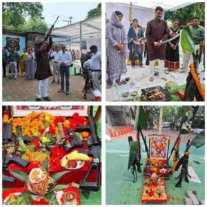 इस अवसर पर जिला में उपलब्ध आधुनिक हथियारों – पिस्टल, राइफल व अन्य अस्त्र-शस्त्रों की पूजा की गई। पूजा के पश्चात पुलिस जवानों ने परंपरा के अनुसार अवाजी फायरिंग कर देवी माँ को समर्पण किया।