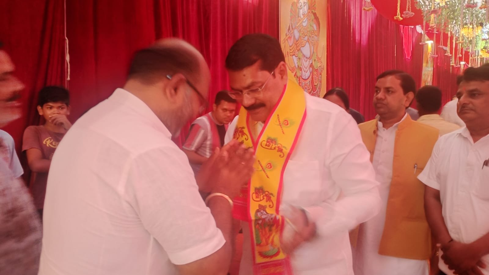 कथा श्रवण के पश्चात श्री मोदी ने व्यास पीठ को नमन कर आशीर्वाद लिया और कहा कि भागवत कथा पुराण सुनने से मन को परम आनंद शांति की अनुभूति हुई है जिसके लिए आयोजन कर्ताओं का आभार व्यक्त करता हूं