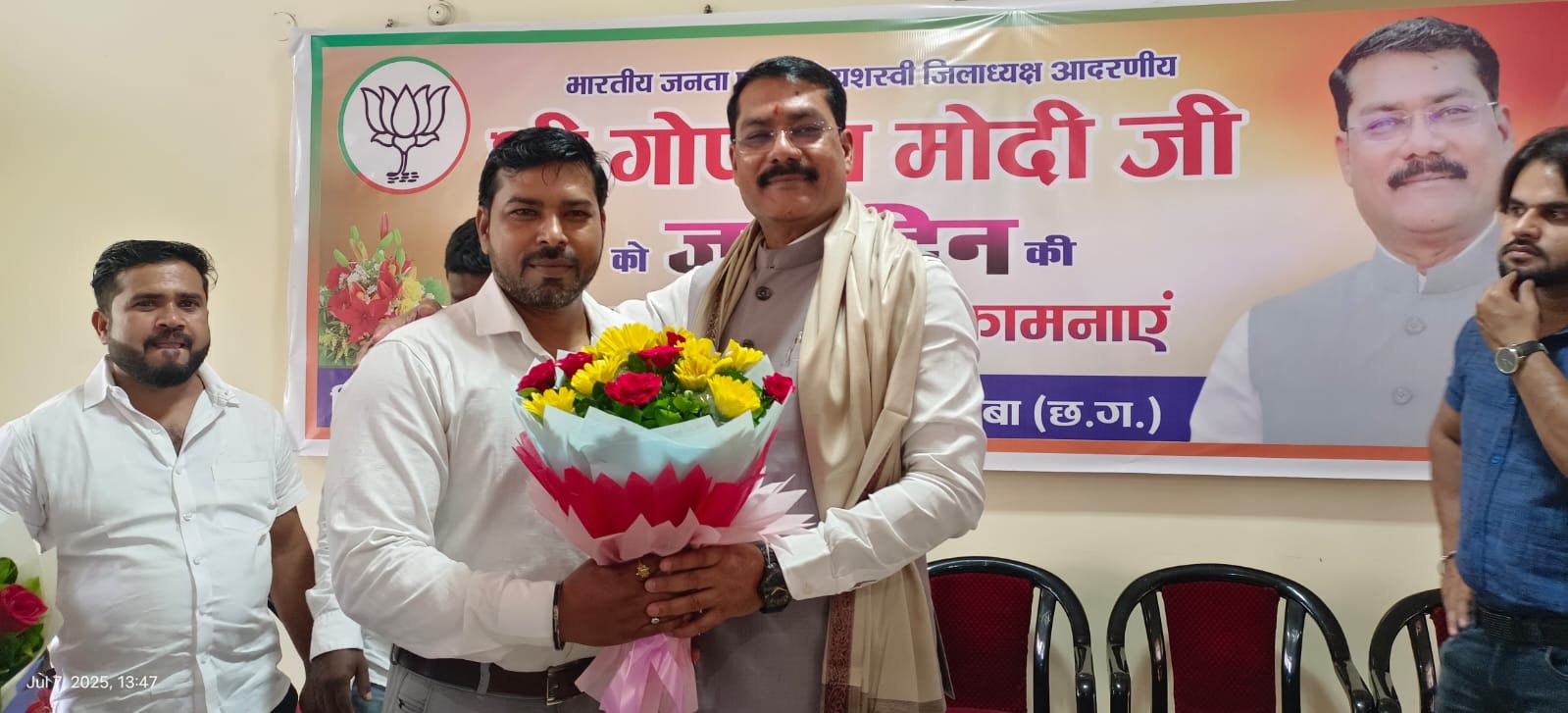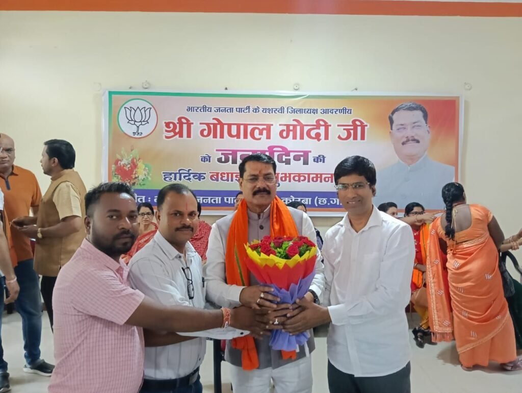 कोरबा। भारतीय जनता पार्टी के जिला अध्यक्ष श्री गोपाल मोदी का जन्म दिवस भाजपा जिला कार्यालय में उत्साह और उल्लास के साथ धूमधाम से मनाया गया। जैसे ही गोपाल मोदी कार्यालय पहुंचे, कार्यकर्ताओं ने फूल-मालाओं से उनका जोरदार स्वागत किया और पूरे परिसर में पटाखों की गूंज से माहौल को और उत्सवमय बना दिया।