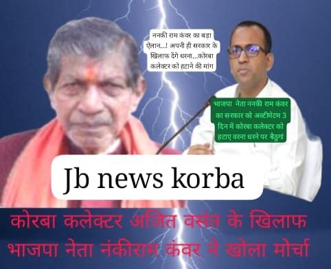 कोरबा।  Nanki Ram warned the BJP government  अपनी ही सरकार के खिलाफ कामकाज को लेकर उंगली उठाने वाले भाजपा के ईमानदार छवि के वरिष्ठ आदिवासी नेता ननकी राम कंवर ने एक बार फिर अपनी सरकार में भ्रष्टाचार को लेकर कटघरे में खड़ा कर दिया है ननकी राम कंवर ने मात्र तीन दिन की मोहलत देकर कोरबा कलेक्टर अजीत वसंत को हटाने की बात कही है अन्यथा धरने पर बैठने का ऐलान कर दिया है इस बयान के बाद राजनीतिक गालियारों में हलचल मच गई है कांग्रेस भी इस बयान को लपकने की तैयारी में है.जे.बी.न्यूज संचालक मनीष जायसवाल की खास रिपोर्ट