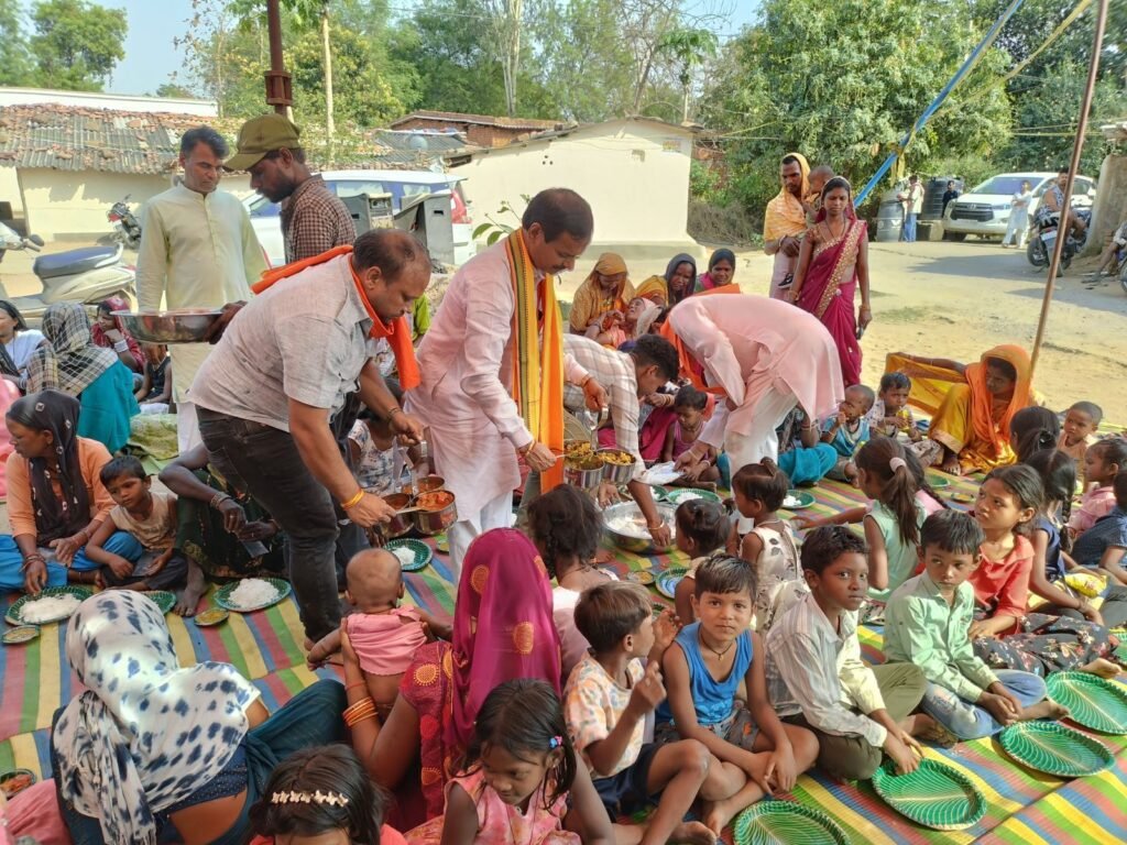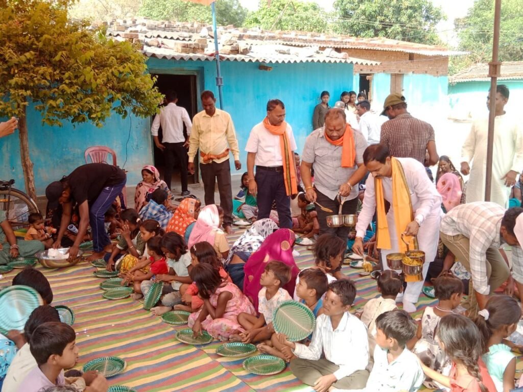 – ग्रामीणों के साथ जमीन में बैठकर किया समरसता भोज ।