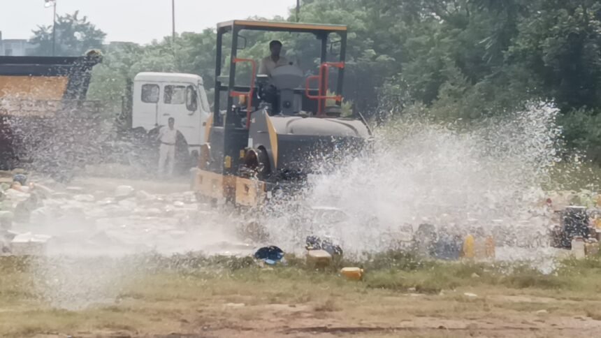 कोरबा में शुक्रवार को पुलिस लाइन में बड़ी मात्रा में शराब नष्टीकरण की कार्यवाही की गई, कार्यवाही वरिष्ठ पुलिस अधिकारियों एवं प्रशासनिक अधिकारियों की उपस्थिति में की गई. कार्यवाही में 21 हज़ार लीटर से अधिक शराब को नष्ट किया गया.