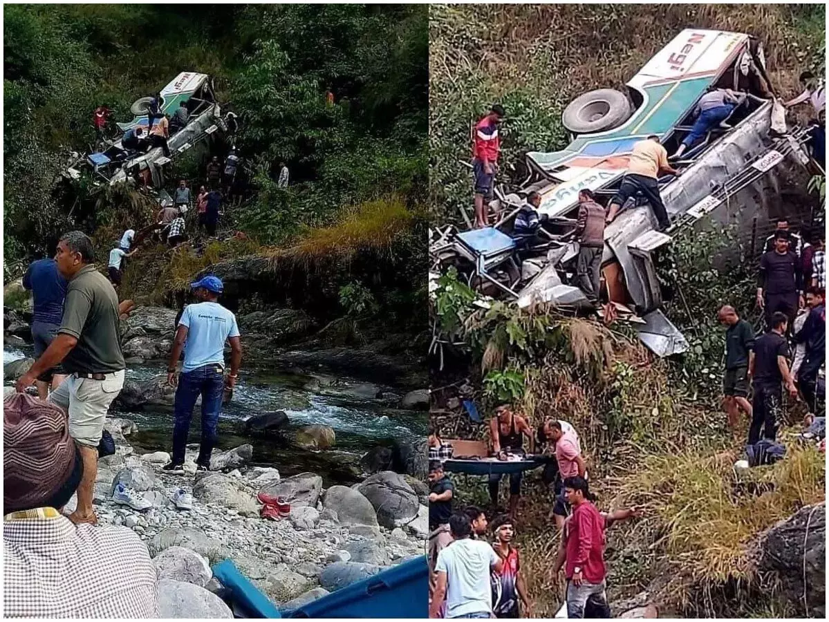 अल्मोड़ा: उत्तराखंड के अल्मोड़ा में बड़ा सड़क हादसा हुआ है। करीब 40 यात्रियों से भरी बस गहरी खाई में गिर गई है। गढ़वाल-रामनगर रूट पर सल्ट के पास यह हादसा हुआ है। दुर्घटना में अब तक 36 लोगों की मौत हो चुकी है। मृतकों की संख्या में इजाफा हो सकता है। घटना स्थल पर एसडीआरएफ और पुलिस की टीम राहत और बचाव में जुटी हुई है। जानकारी के मुताबिक सोमवार सुबह गौरीखाल से एक बस रामनगर के लिए निकली थी। बस में 40 से अधिक यात्री सवार थे। सल्ट के कूपी के पास चालक ने बस से नियंत्रण खो दिया। देखते ही देखते बस गहरी खाई में समा गई। बस के गिरते ही यात्रियों में चीख पुकार मच गई।