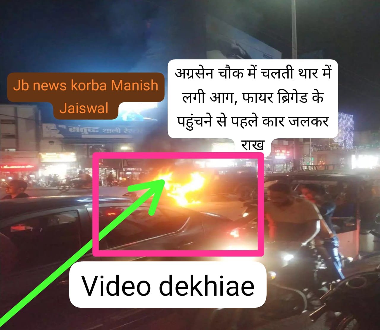 बिलासपुर। छत्तीसगढ़ के बिलासपुर शहर के अग्रसेन चौक के पास शुक्रवार देर शाम एक चलती थार गाड़ी में अचानक आग लग गई, जिसके कारण वाहन पूरी तरह जलकर राख हो गया। बता दें कि अग्रसेन चौक शहर का व्यस्त इलाका है, जहां से काफी लोग गुजरते हैं। गनीमत रही कि चालक ने सूझबूझ दिखाते हुए समय रहते गाड़ी से कूदकर अपनी जान बचा ली।