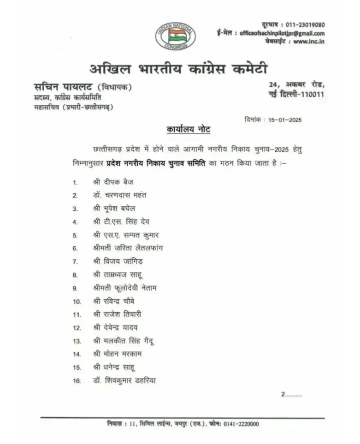 इधर मुख्य विपक्षी दल कांग्रेस ने अपनी चुनाव समिति का गठन कर लिया है। यह समिति नगरीय निकाय चुनाव के संचालन, उम्मीदवार चयन और टिकट वितरण जैसे महत्वपूर्ण कार्यों की जिम्मेदारी संभालेगी। यह समिति हर छोटे-बड़े फैसले लेने में सक्षम होगी।