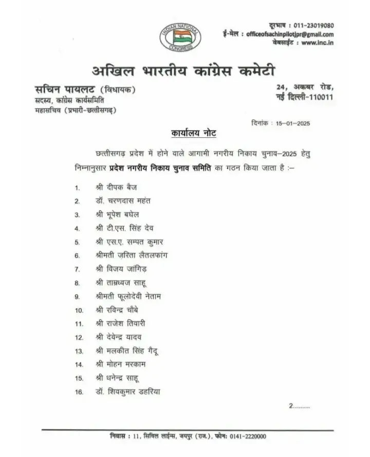 कांग्रेस की इस ताकतवर समिति में प्रदेश अध्यक्ष दीपक बैज, पूर्व मुख्यमंत्री भूपेश बघेल, और भिलाई के विधायक देवेंद्र यादव, जो वर्तमान में जेल में हैं, को भी शामिल किया गया है। यह समिति चुनाव के दौरान पार्टी की रणनीतियों को तय करेगी और उन्हें अमल में लाएगी। छत्तीसगढ़ में चुनावी माहौल गर्म है, और राजनीतिक दलों के बीच जीत की होड़ शुरू हो गई है। सभी दल अपने-अपने स्तर पर पूरी तैयारी में जुटे हुए हैं।