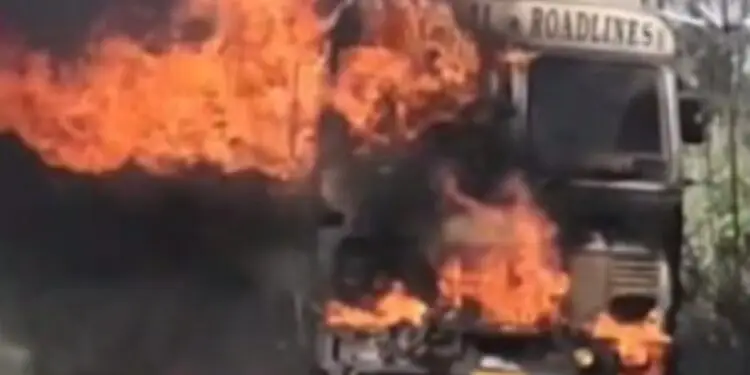 बिलासपुर : जांजगीर हाइवे पर बड़ा हादसा हो गया, जहां आयरन लेकर बिलासपुर की ओर आ रही एक चलती ट्रक में अचानक आग लग गई। देखते ही देखते आग ने पूरे ट्रक को अपनी चपेट में ले लिया और कुछ ही देर में वाहन पूरी तरह जलकर खाक हो गया। बताया जा रहा है कि ट्रक में लगी आग का कारण शॉर्ट सर्किट हो सकता है। घटना से हाईवे पर अफरा-तफरी मच गई, हालांकि हादसे में किसी प्रकार की जनहानि की सूचना नहीं है। दमकल दल ने मौके पर पहुंचकर आग पर काबू पाया गया।