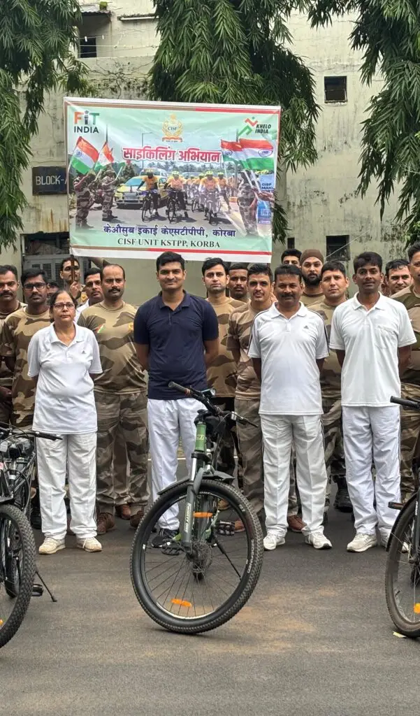 कोरबा। बल मुख्यालय के निर्देशों के अनुरूप और भारत सरकार की खेलो इंडिया योजना और फिट इंडिया अभियान के तहत, केंद्रीय औद्योगिक सुरक्षा बल (सीआईएसएफ) की केएसटीपीपी, कोरबा इकाई ने आज उप समादेष्टा श्री ऐल गौथेम के नेतृत्व में महिला निरिक्षक उषारानी के निरिक्षण में एक साइकिल अभियान का आयोजन किया।