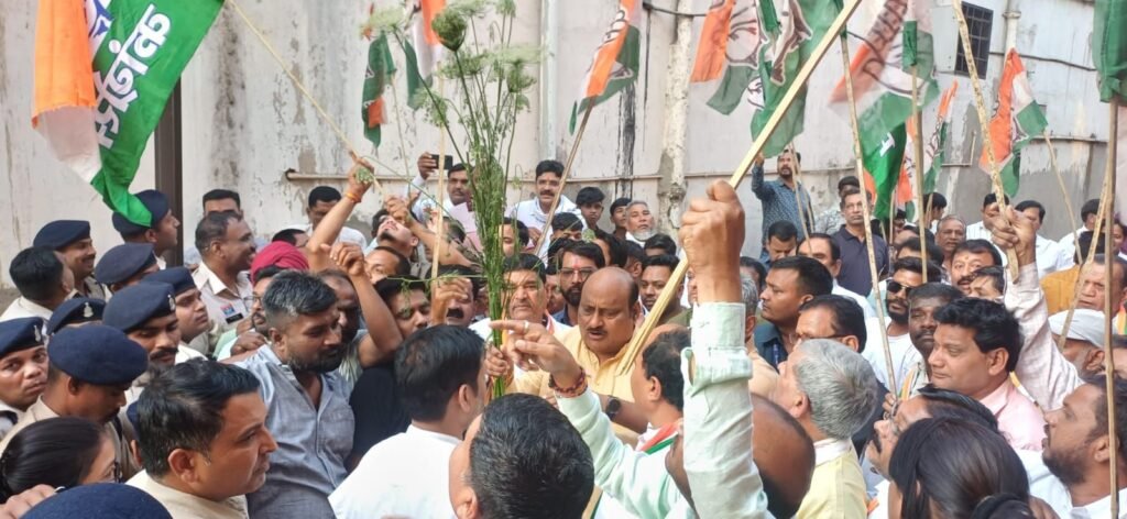 कोरबा। Indian National Congress के प्रदेश नेतृत्व के निर्देश पर जिला कांग्रेस कमेटी कोरबा ने गुरुवार को भाजपा के खिलाफ जोरदार प्रदर्शन किया। पूर्व मंत्री Jai Singh Agrawal के नेतृत्व में कांग्रेस कार्यकर्ताओं ने टीपी नगर स्थित Bharatiya Janata Party कार्यालय का घेराव कर विरोध जताया।